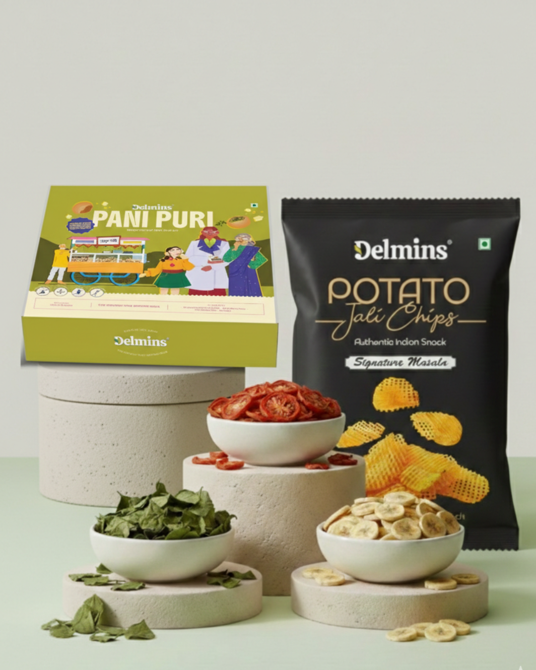 Delmins Food specializes in dehydrated fruits, vegetables, herbs, spices, and flowers, processed using controlled dehydration methods to preserve natural color, aroma, and nutritional value. Alongside this, Delmins Food also offers select Gourmet Delights, including ready-to-eat pani puri and jaali chips, developed with the same focus on quality and consistency.